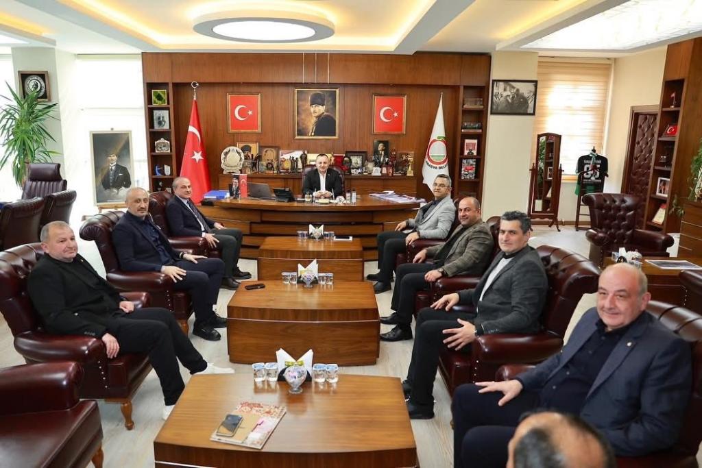 Amasya Ticaret ve Sanayi Odası Yönetim Kurulu Başkanı Murat Kırlangıç, Meclis Başkanı Nureddin Güçyetmez ve Yönetim Kurulu Üyeleri ile birlikte Amasya Belediye Başkanı Sayın Turgay Sevindi’yi makamında ziyaret etti.